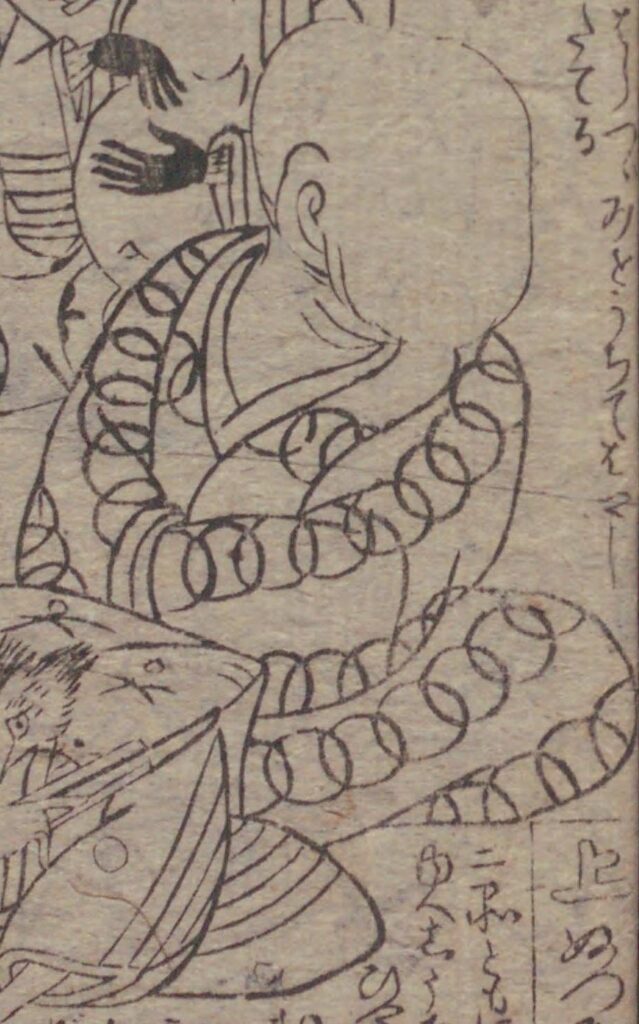 でも、ただ不気味なだけではありません。江戸時代の画集では、着物をきっちり着こなして、すましたポーズをとっているような**「変な余裕」**を感じさせる姿も多く、どこかコミカルで憎めない魅力があります。描くときは、あえて首から下を「ごく普通の人間」として丁寧に描くのがポイントです。その日常感があるからこそ、不意に振り返った瞬間のツルリとした顔が、最高に「人を食ったような」シュールな笑いと驚きを生むのです。
