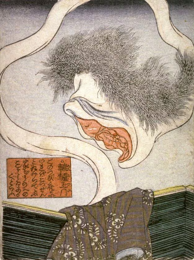 首が体から完全に離れ、頭部だけで空を飛ぶタイプ。中国の「飛頭蛮(ひとうばん)」の影響を受けているとされ、夜間に蚊を食う、あるいは人の生気を吸うといった吸血鬼的な側面も持ちます。